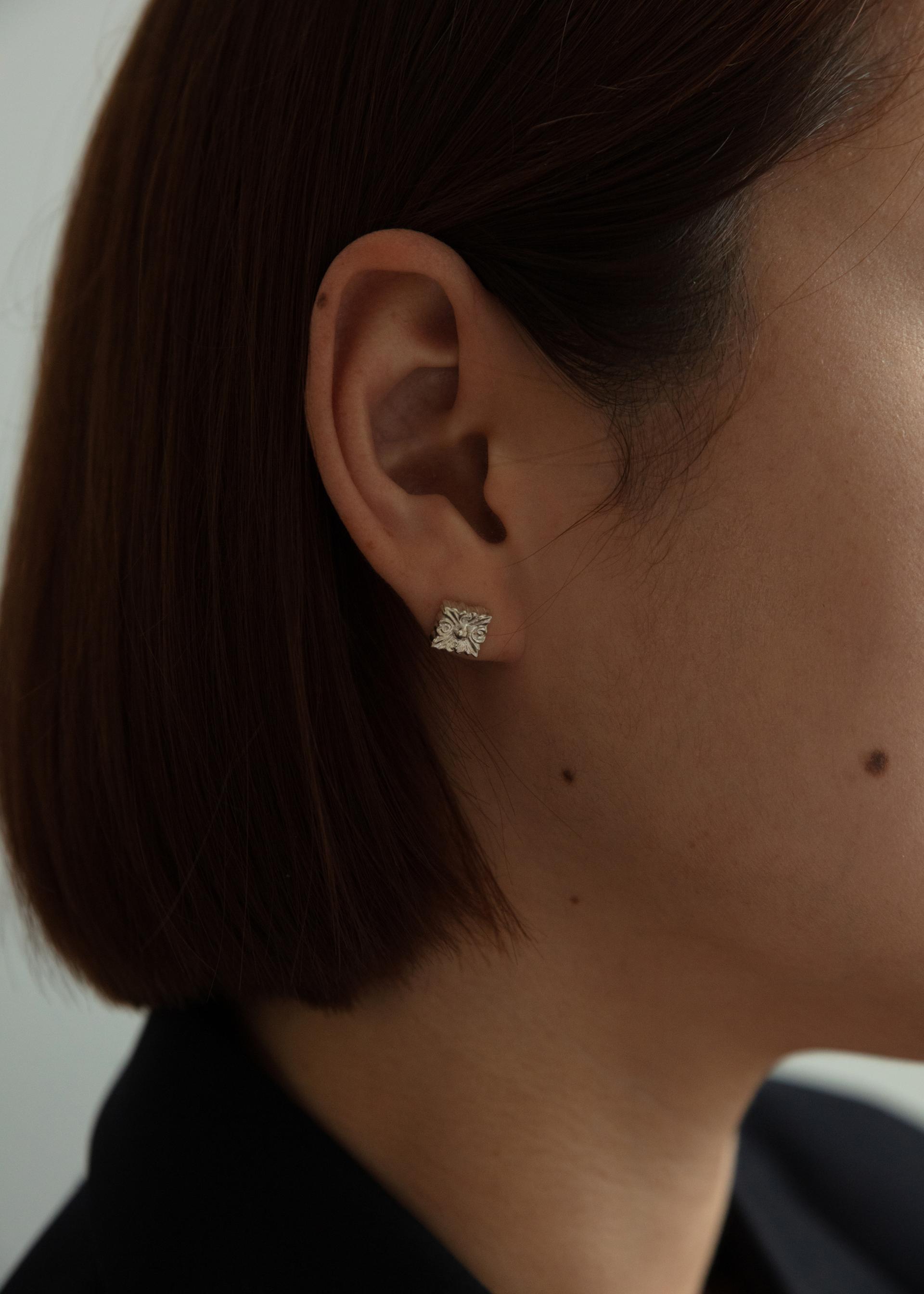 장미를 고전적으로 형상화한 모티프 스터드 이어링. 주문 완료 후 제작되어 기간은 공휴일 제외 3-10일 정도가 소요됩니다.